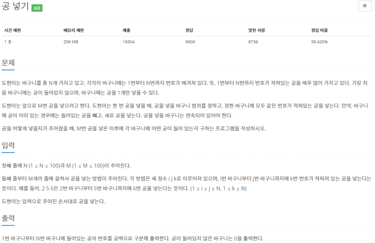 [C++] 백준 10810 공넣기 본문
