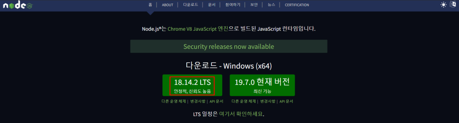 제가 글을 작성하는 시점에서는 18.14.2 LTS로 설치를 진행하였습니다.