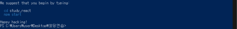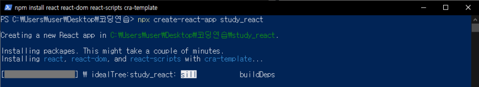 * study_react라고 적혀있는 부분에 원하는 프로젝트명을 기입하면 됩니다.