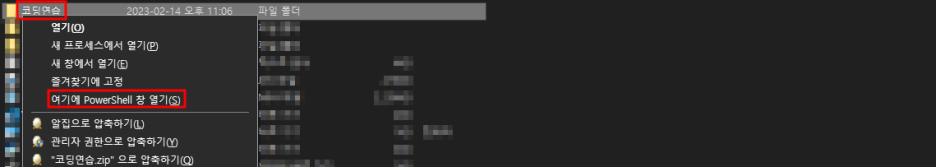 이 폴더에서 "Shift + 우클릭" → "여기에 PowerShell 창 열기"를 눌러줍니다.
