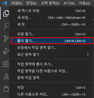 이제 VS Code를 실행해서 프로젝트를 오픈해 봅시다.