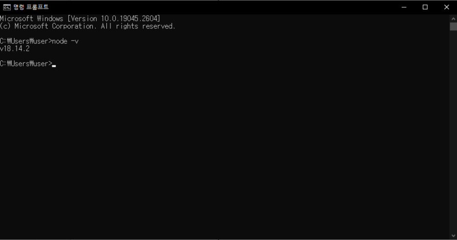 설치가 완료된 후, node.js가 정상적으로 설치되었는지 확인을 하기 위해,