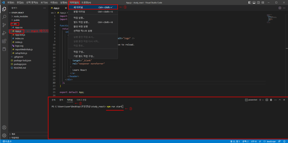 scr > App.js 가 메인 페이지라고 생각하면 됩니다.