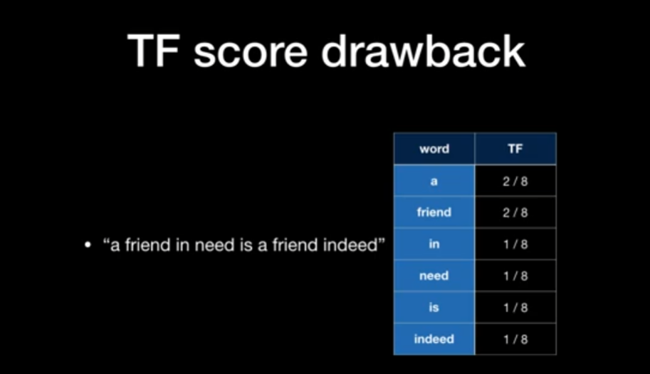 . 단점: 'a'와 같이 연관성은 없지만 여러 문장에 자주 출연하는 단어들이 있다.이로인해 문서와 연관성을 나타내기 어려워진다.