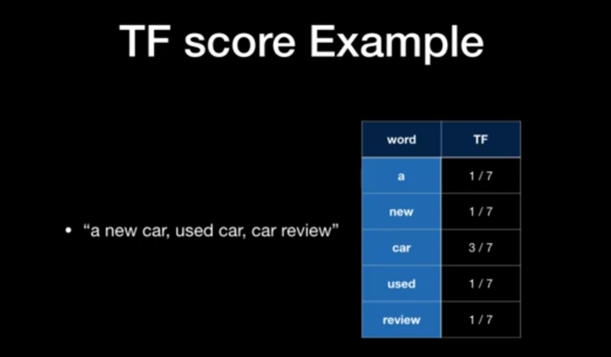 . TF Score: 자주 출현할 수록 점수가 높아진다.